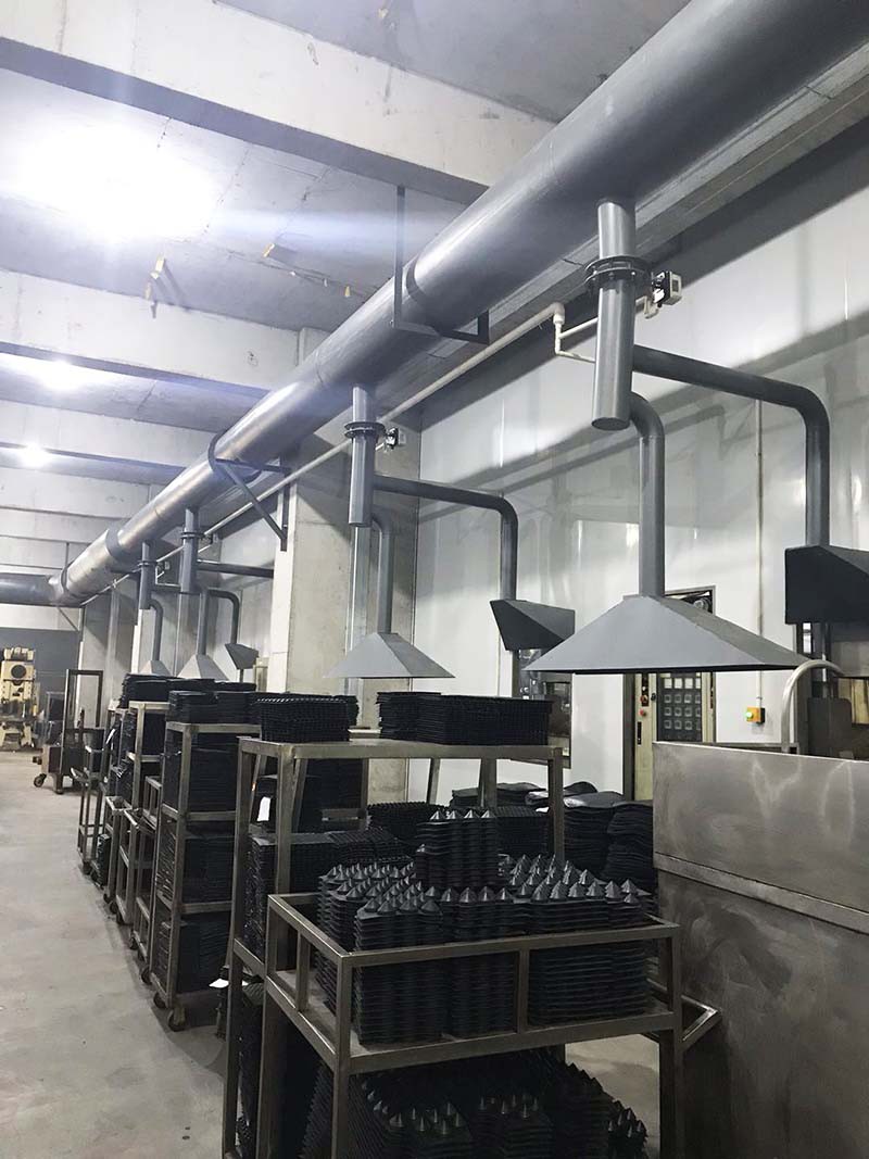 工作原理:廢氣凈化噴淋塔主要的運(yùn)作方式是廢氣由風(fēng)管引入凈化塔,經(jīng)過(guò)填料層,廢氣與氫氧化鈉吸收液進(jìn)行氣液兩相充分接觸吸收中和反應(yīng),廢氣經(jīng)過(guò)凈化后,再經(jīng)除霧板脫水除霧后由風(fēng)機(jī)排入大氣。吸收液在塔底經(jīng)水泵增壓后在塔頂噴淋而下,然后回流至塔底循環(huán)使用。凈化后的廢氣達(dá)到地方排放標(biāo)準(zhǔn)的排放要求,低于國(guó)家排放標(biāo)準(zhǔn)。
