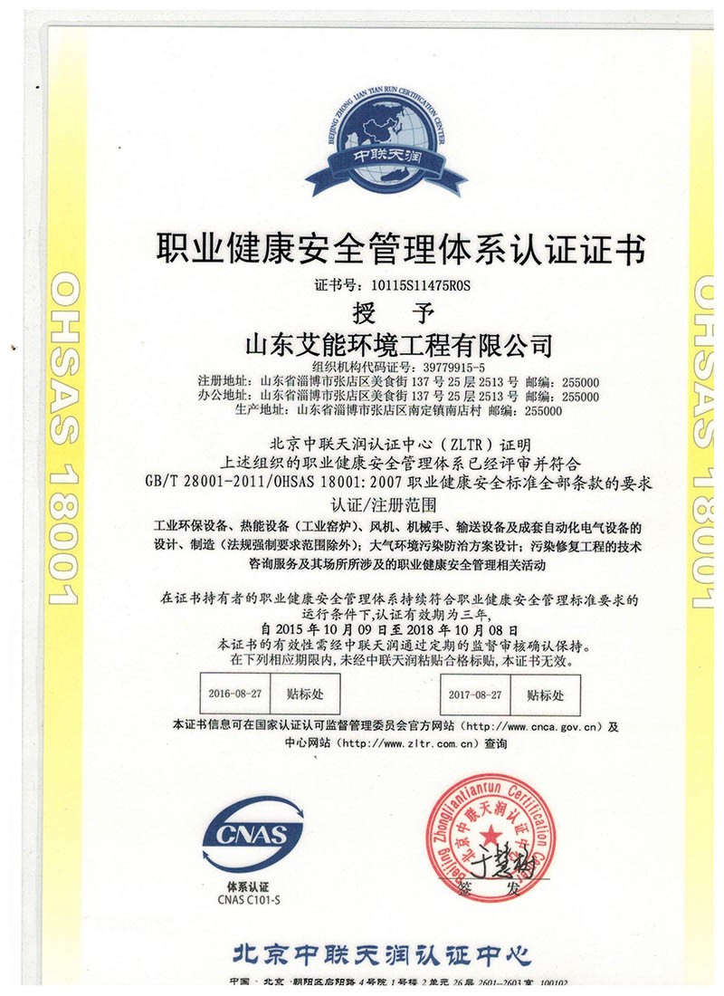 職業(yè)健康安全管理體系認(rèn)證證書(shū)